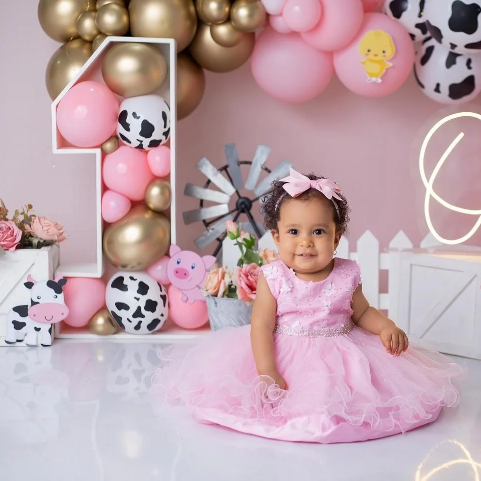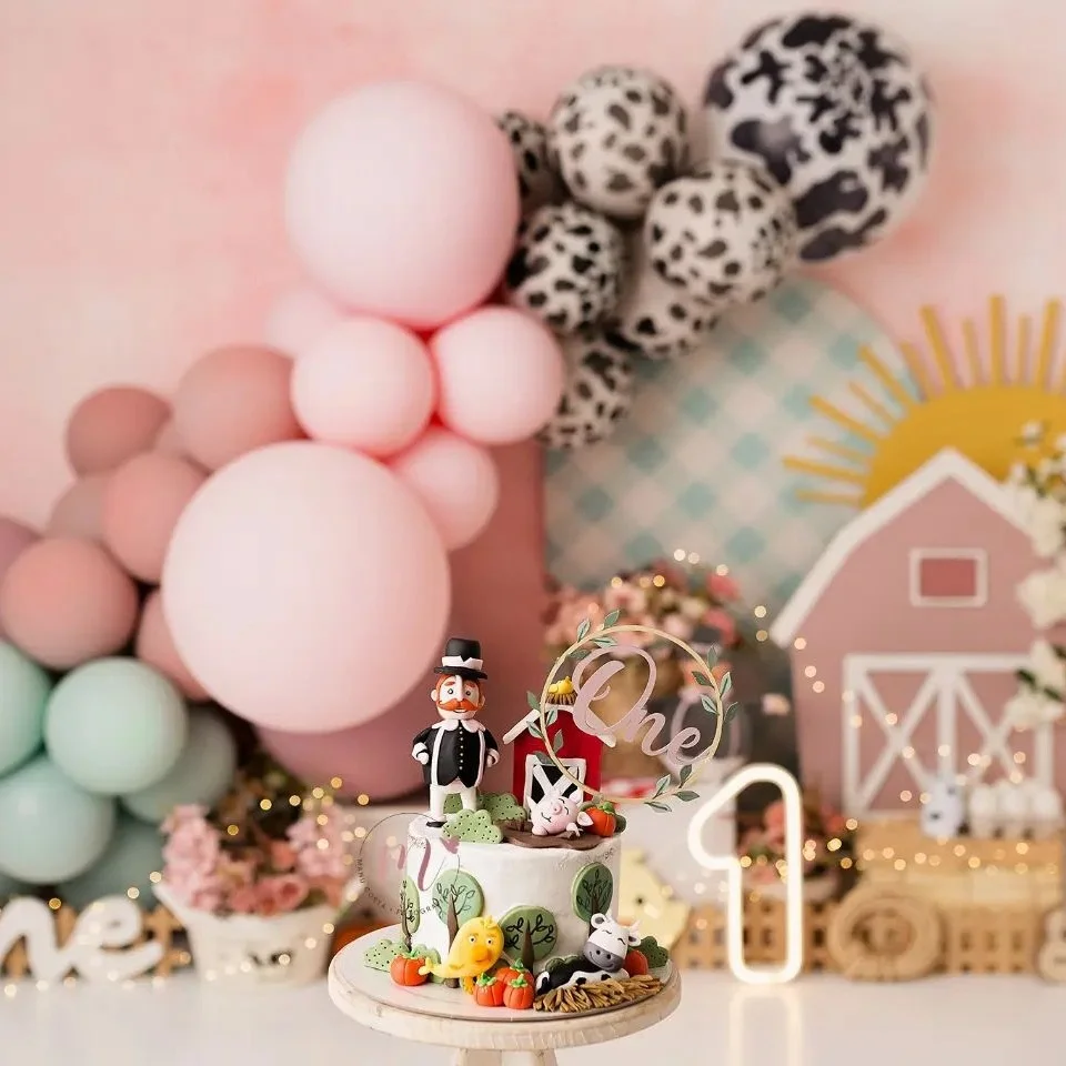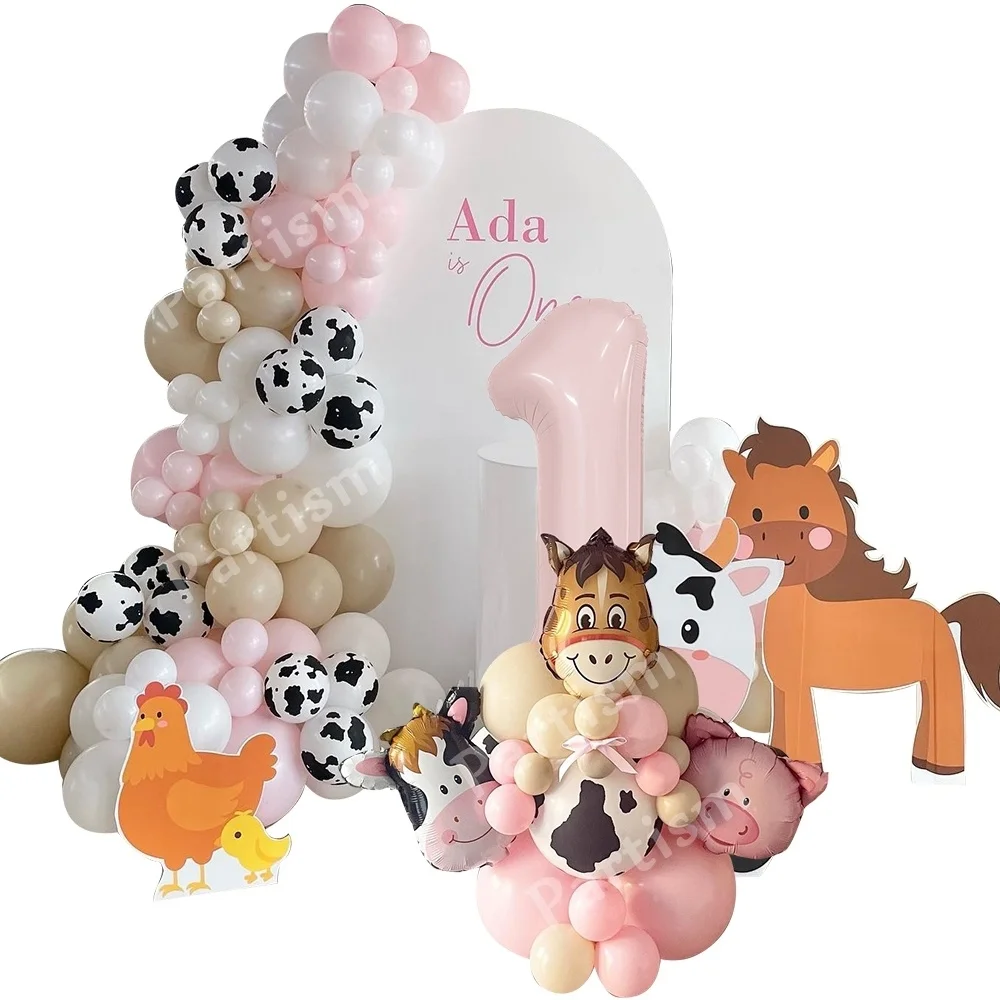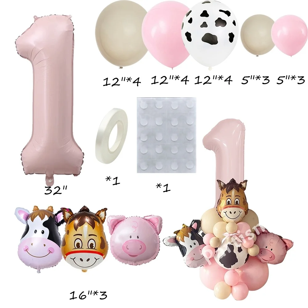 Carton Farm Animal Balloon Set with Pink Foil Number Balloon for Kids Farmland Animal Happy Birthday Party Decoration Supplies