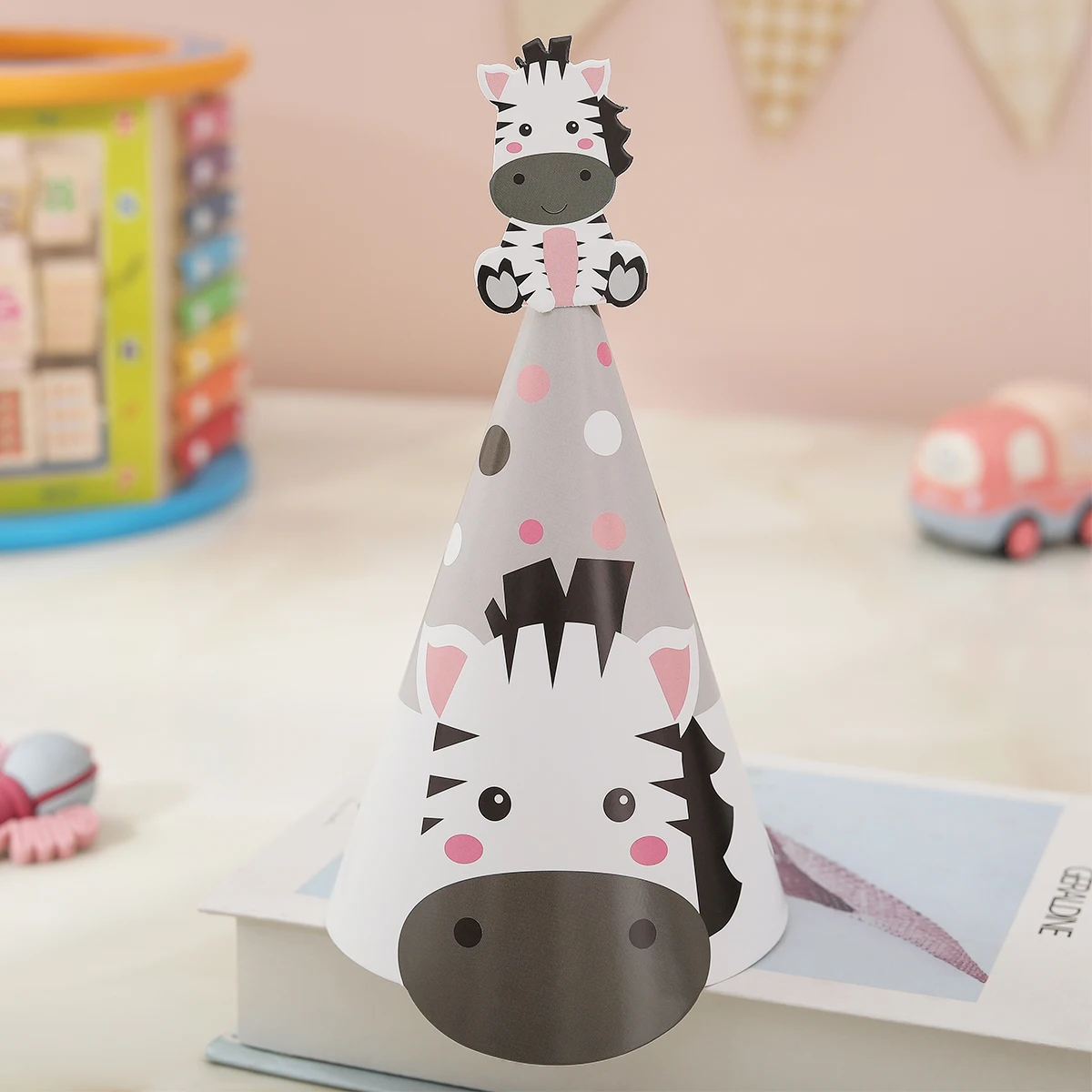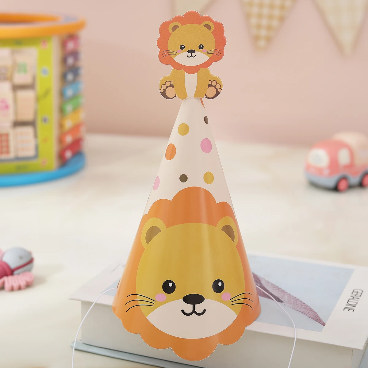 Forest animal jungle party decoration birthday hat Tiger elephant lion giraffe monkey zebra photo props headdress 1 set of 6 pie